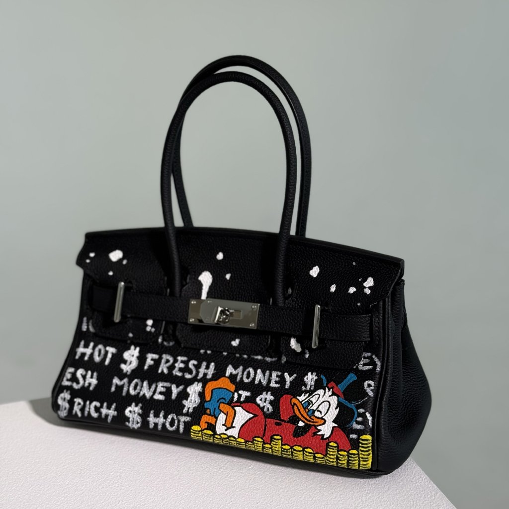 Každý kus je originál v limitovaném počtu – malba nikdy nepůsobí úplně stejně, a právě v tom je její kouzlo. Lindy je ideální na den i večer: elegantní forma, pevný tvar a prémiové kování vytvářejí luxusní dojem, zatímco umělecký design jí dává charakter.