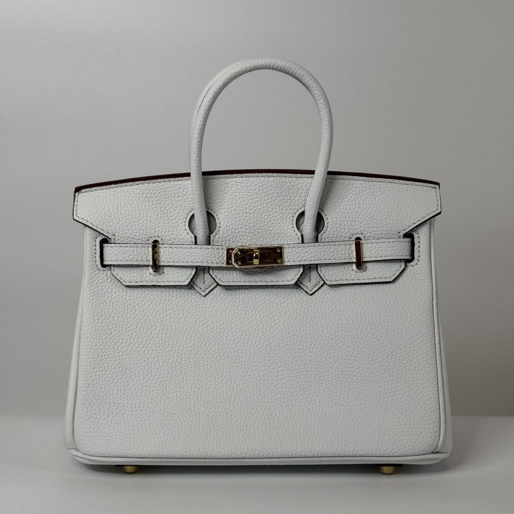 The handbag is handcrafted from genuine togo leather, and thanks to its 25 × 20 × 13 cm dimensions, it is perfect for everyday wear as well as for moments when you want to look polished, feminine, and timeless.