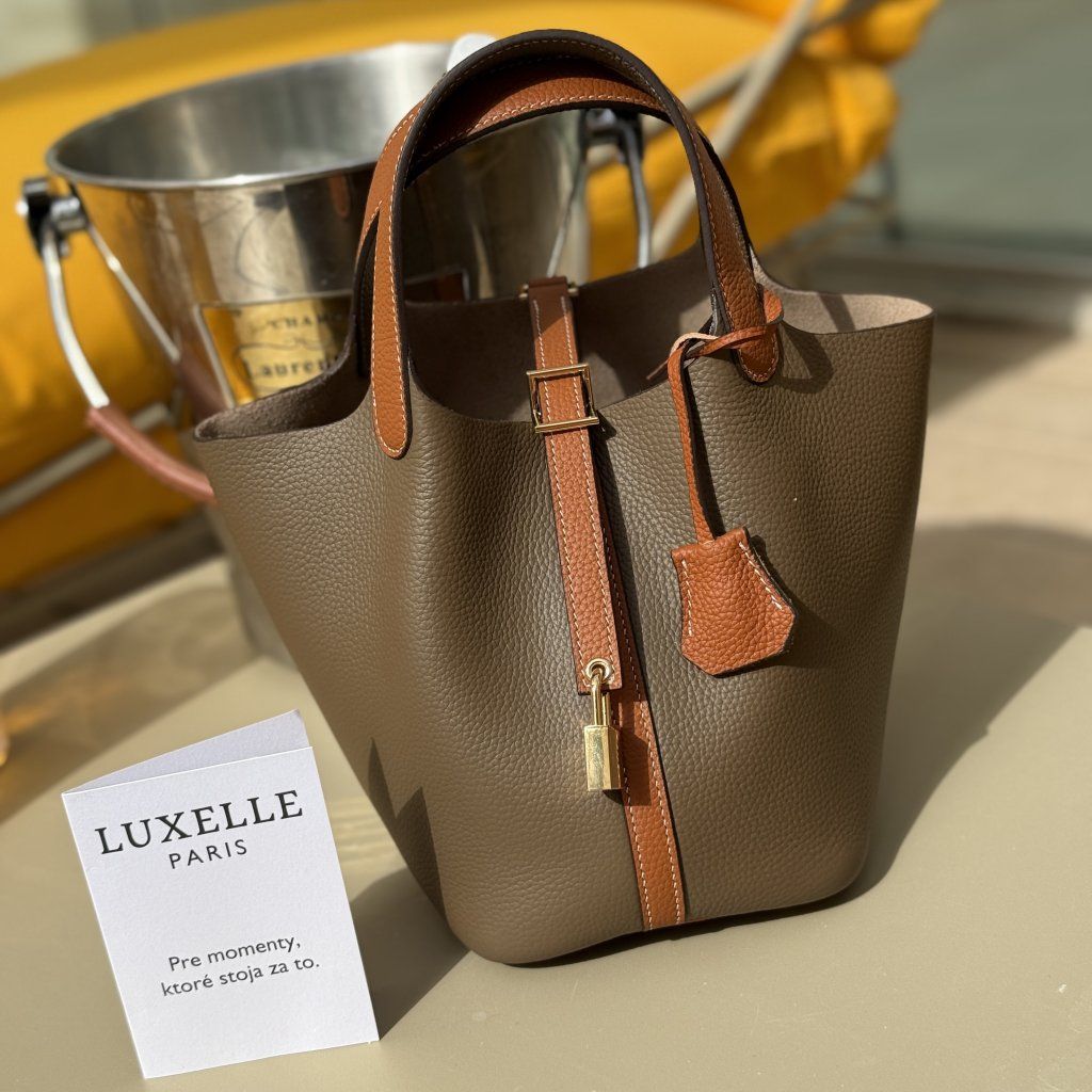 Mini Bucket by Luxelle Paris je definícia ležérneho luxusu. Minimalistická silueta „bucket“, mäkká koža a kontrastné detaily – žiadna logománia, len čistý dizajn.
