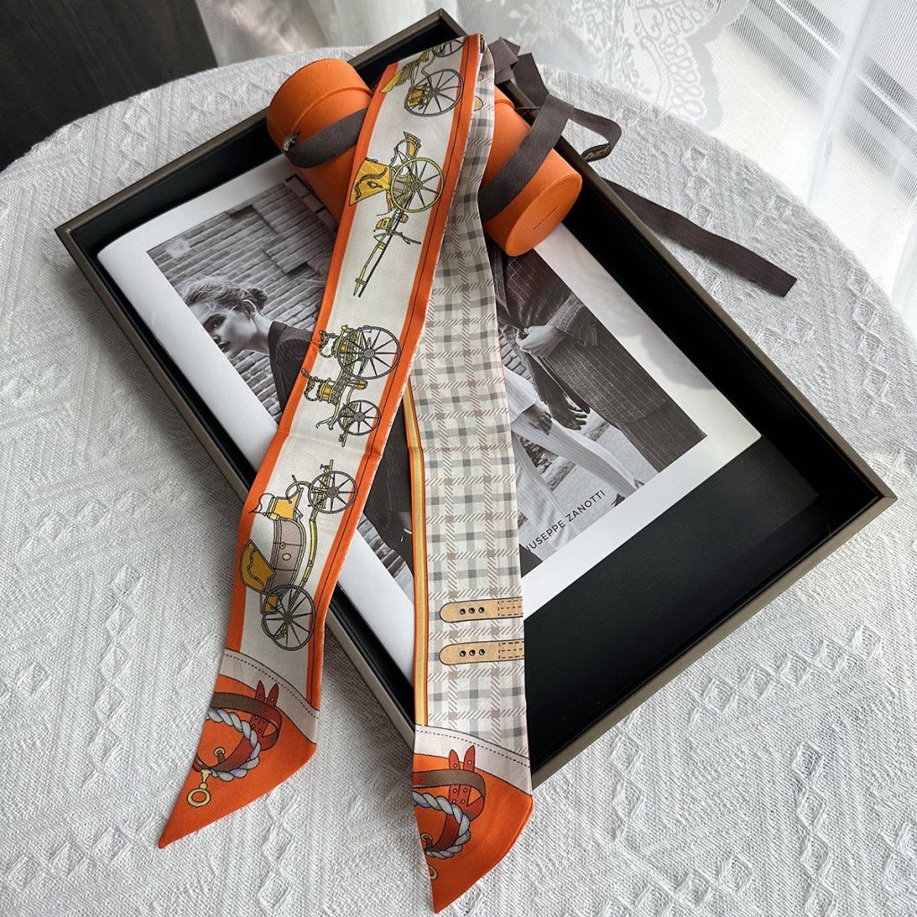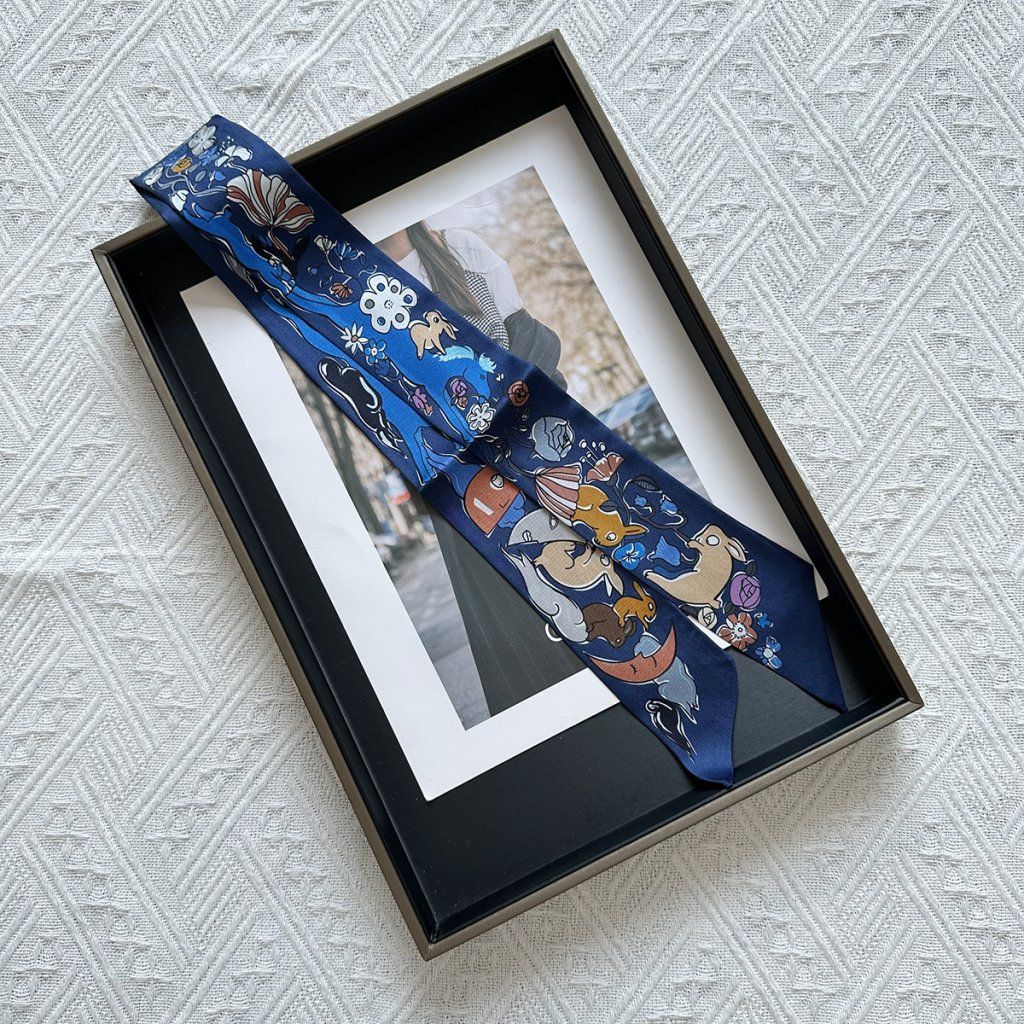 Táto jemná, úzka šatka zo 100 % prírodného hodvábu je dostupná v originálnych dizajnoch a farbách, ktoré dokonale doplnia tvoju kabelku. Oviň ju okolo rúčky, zaviaž na mašľu alebo ju nechaj voľne visieť – každý detail rozpráva tvoj príbeh 🎨.